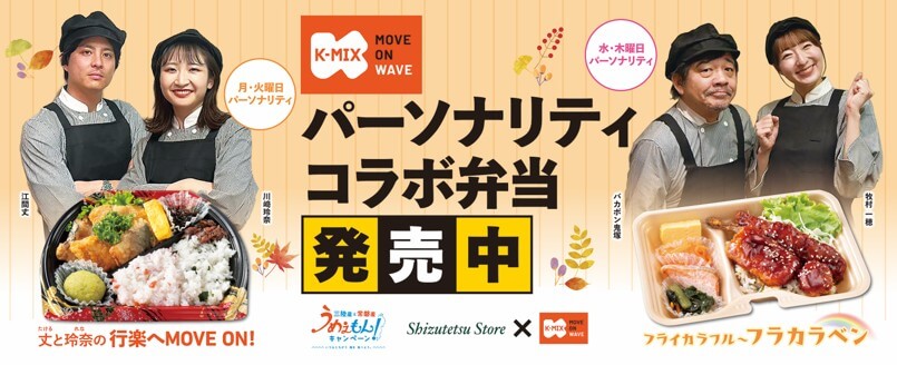 静岡県下で34店舗展開する静岡鉄道系列のスーパーマーケット「しずてつストア」とK‐MIX夕方のワイドプログラム「K-MIX MOVE ON」がタイアップしてお弁当を開発・販売しました。